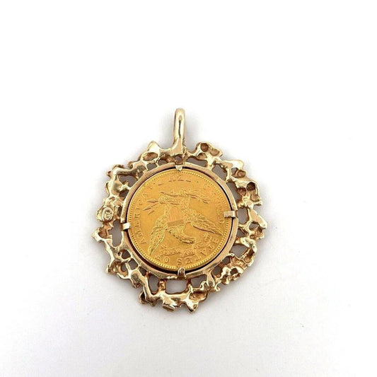 1895 10 Dollar Liberty Freeform 14K Yellow Gold Frame 30g Head Half Eagle Coin Pendant