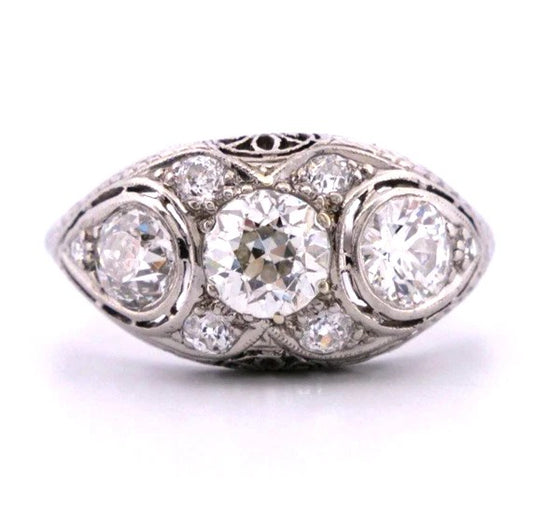 1920s Art Deco Old European Cuts Handmade Filigree 2.00CTW Platinum Diamond Ring