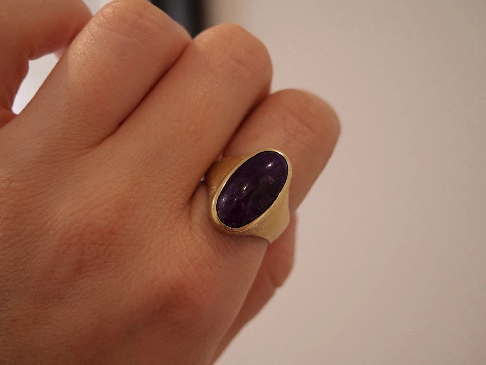 14K Yellow Gold 12.00 Grams Custom Purple Charoite Bezel Ring Size 10