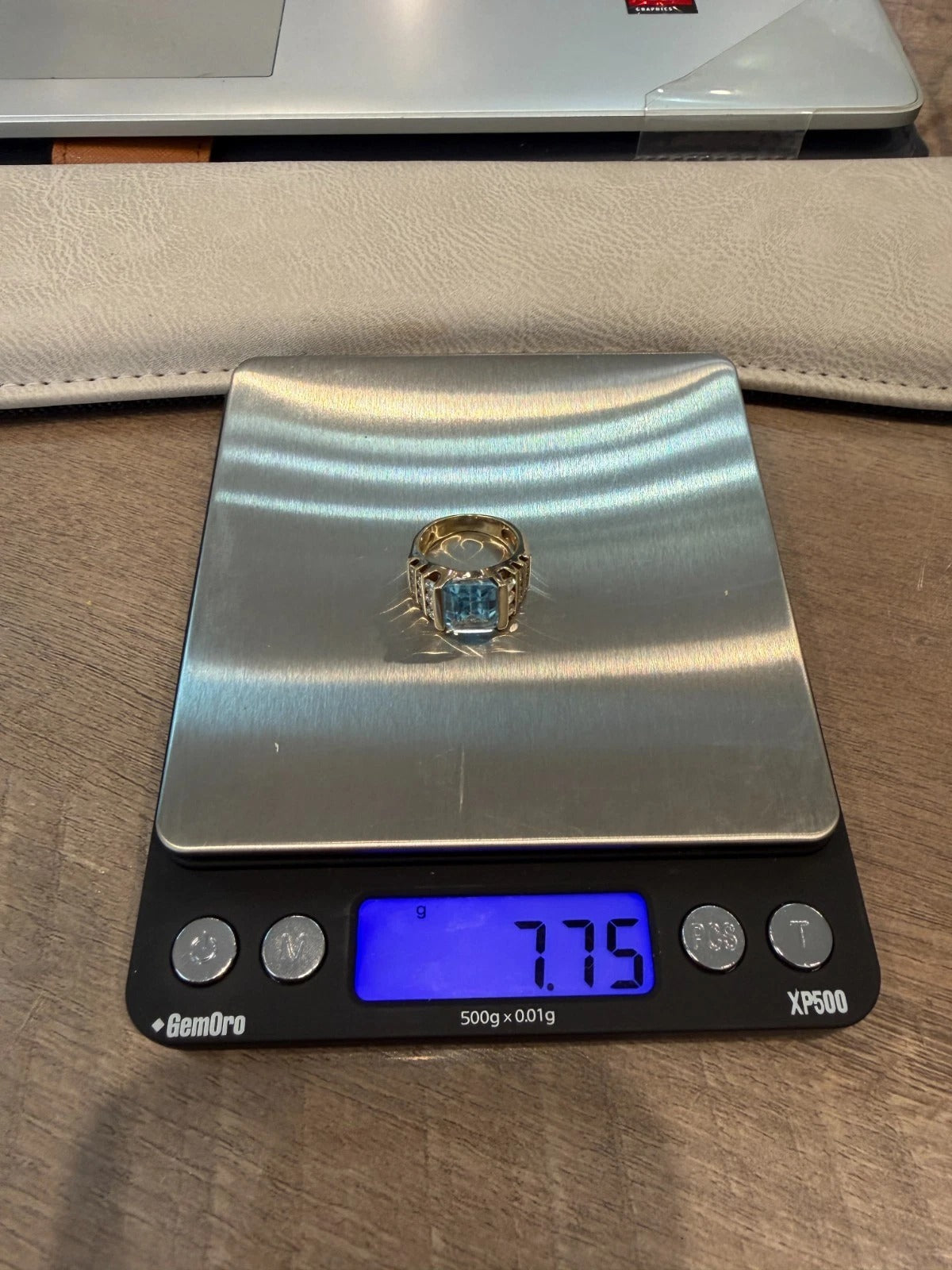 14K Yellow Gold Emerald Cut 7.75g Aquamarine Diamond Ring Size 4.75