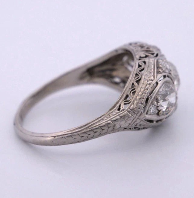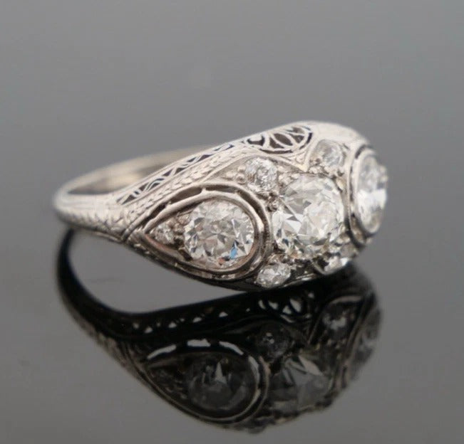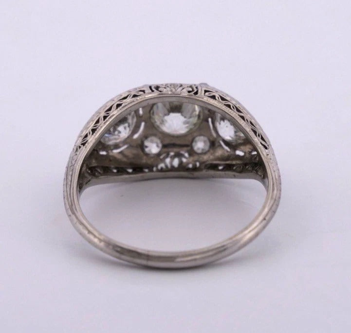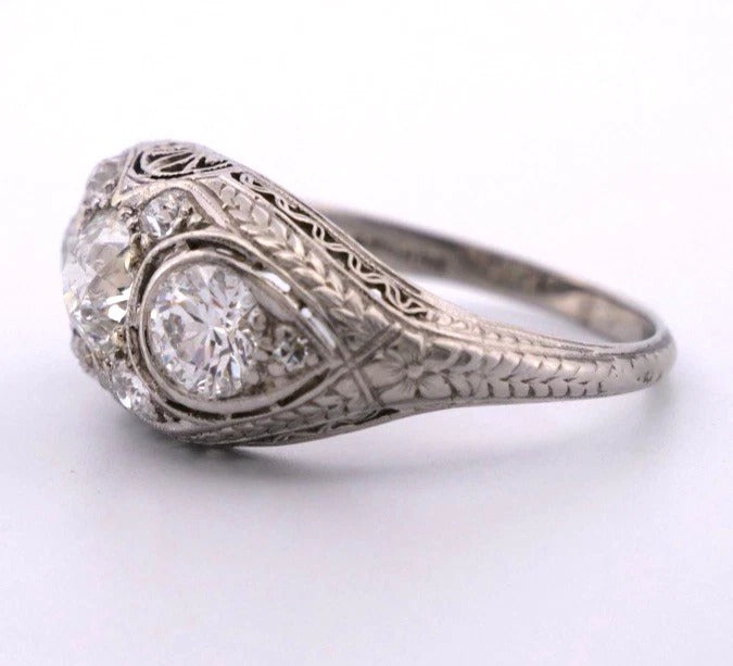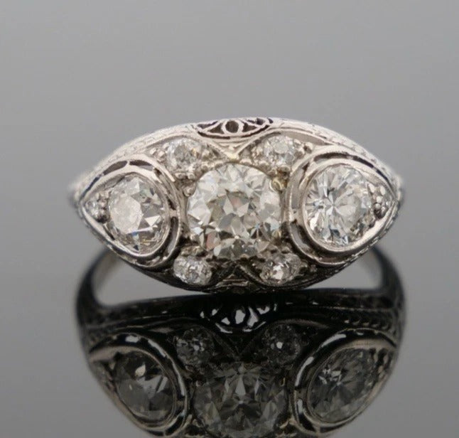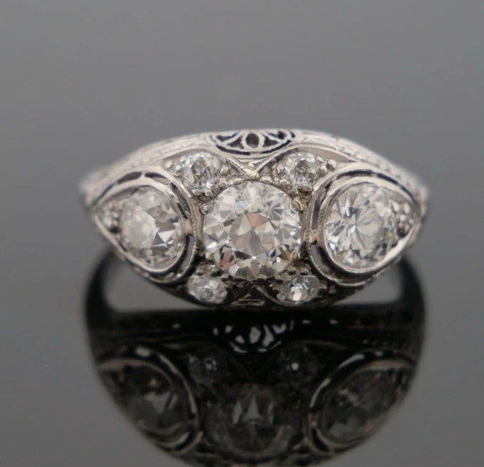 1920s Art Deco Old European Cuts Handmade Filigree 2.00CTW Platinum Diamond Ring