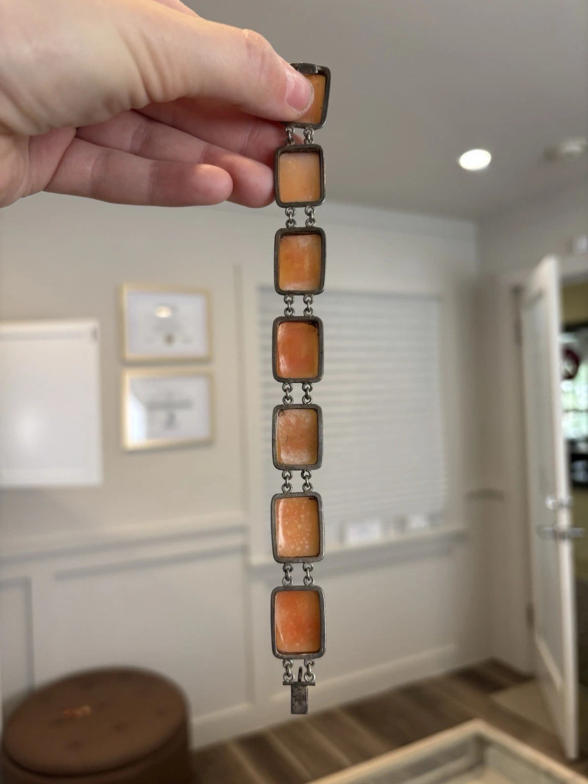 Antique Carved Shell Cameo Panel 800 Silver Italy 7.5" 21.61g Bracelet