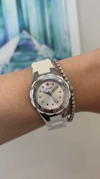 Michele Tahitian Jelly Bean Watch | White Silicone | Multi-Gem Hour Markers | Stainless Steel | Box & Cards